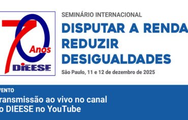 Em 11 e 12 de dezembro, o DIEESE promove o “Seminário internacional: disputar a renda, reduzir desigualdades”, em São Paulo. O evento é parte das comemorações de 70 anos do DIEESE e conta com patrocínio da Itaipu Binacional e apoio do Sesc e da Fundação Banco do Brasil. As atividades serão transmitidas ao vivo no […]