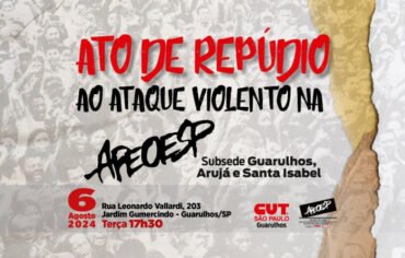 Após a ação violenta sofrida por membros da Apeoesp Guarulhos na última terça-feira (30), a entidade sindical da região, juntamente com a CUT São Paulo subsede Guarulhos, realizarão nesta terça-feira, 6, um ato de repúdio. A manifestação acontecerá a partir das 17h30, em frente à Apeoesp Guarulhos. A ação conjunta também visa reforçar o repúdio […]