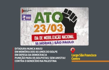 A CUT e demais movimentos sociais que compõem as frentes Brasil Popular e Povo Sem Medo preparam uma agenda nacional de luta no próximo sábado, dia 23 de março. Com o mote “ditadura nunca mais!”, a manifestação terá a defesa da democracia como bandeira central, além de ser um momento para relembrar os 60 anos […]
