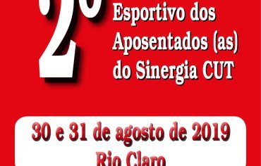 Tá chegando!!!! O Sinergia CUT promoverá nos dias 30 e 31 de agosto próximo a sua segunda edição do Campeonato Esportivo de Aposentados, Aposentadas e Pensionistas, no Clube dos Bancários, em Rio Claro. As macrorregiões que vão participar do evento são: Campinas, Rio Claro, Bauru, Sertãozinho e Ilha Solteira. O campeonato contará com quatro modalidades […]