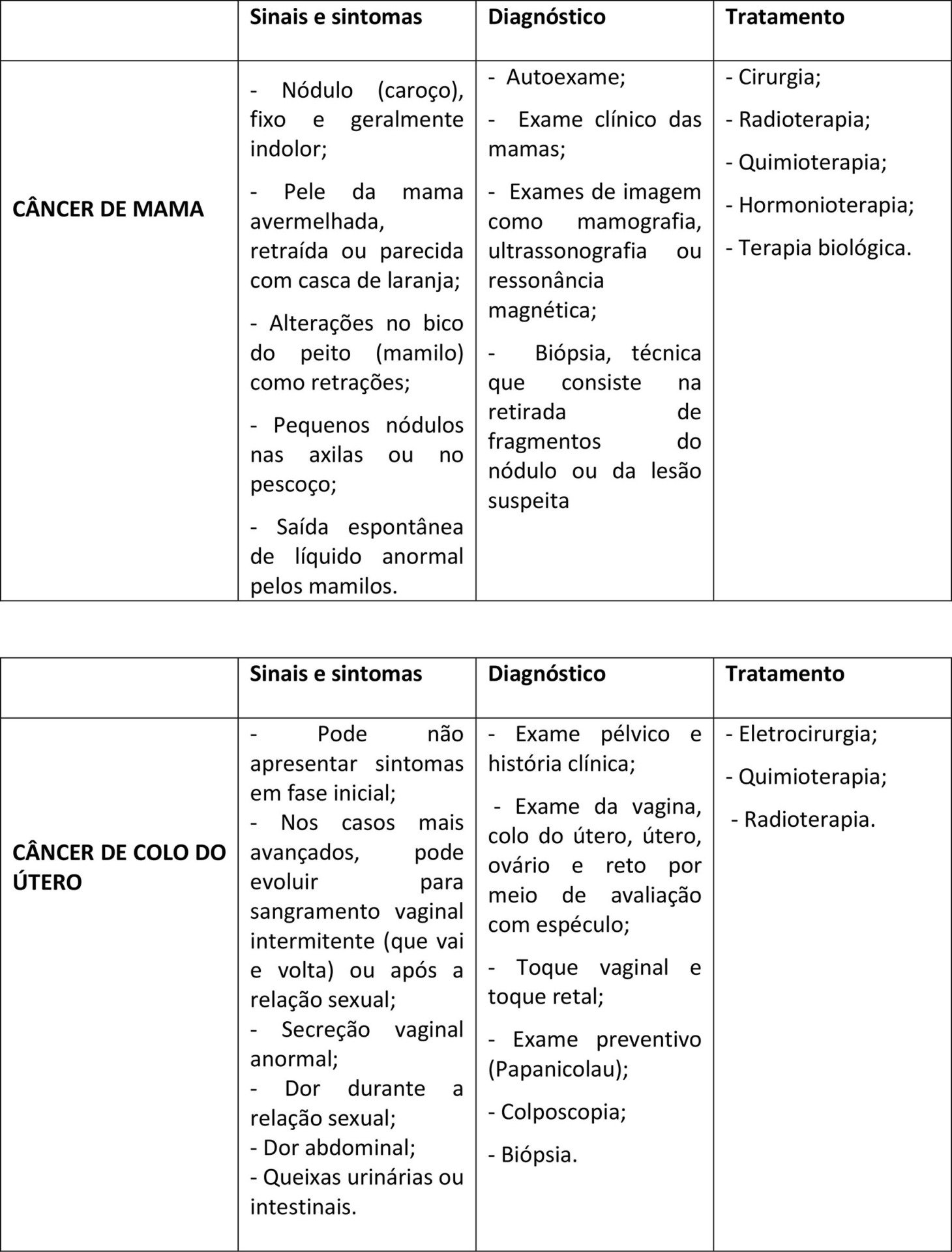 Veja nos quadros abaixo um resumo dos principais sintomas e quais seus possíveis diagnósticos e tratamentos. Sim! Porque se descobertos precocemente, existe tratamento e cura!