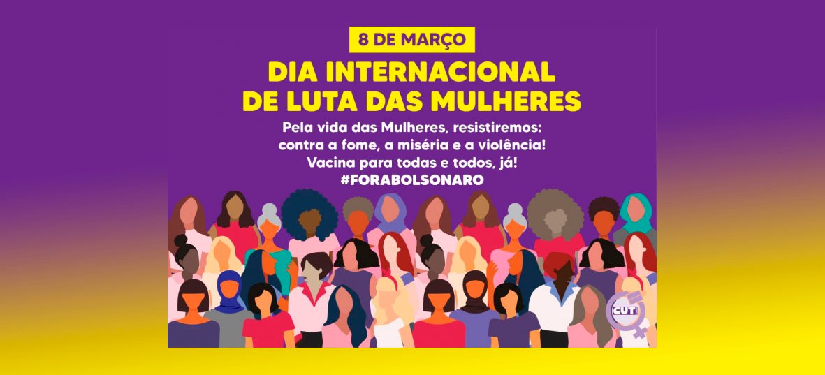 Na luta pela vida e por condições dignas de sobrevivência, com o mote “Pela Vida das Mulheres, Resistiremos: contra a fome, a miséria e a violência! vacina para todas e todos, já e Fora Bolsonaro”, as mulheres CUT, de movimentos sociais, sindical e feministas vão fazer no próximo dia 8 de março, data que se celebra o Dia Internacional da Mulher, atos, diálogos e denúncias sobre a situação das mulheres em todo o país.