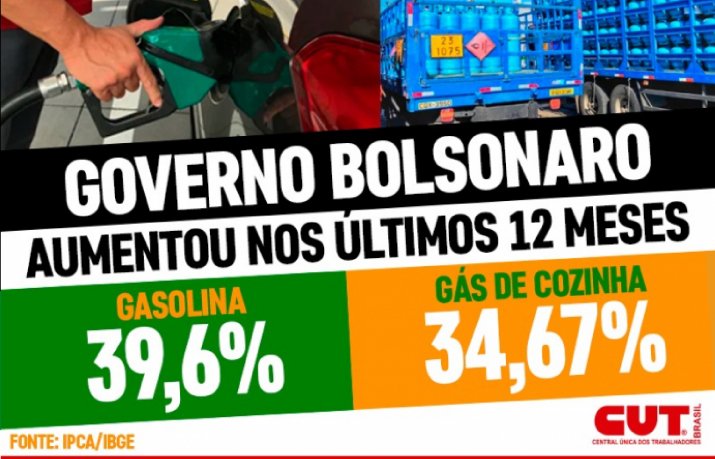 De acordo com o IBGE, no acumulado nos últimos 12 meses até setembro, a gasolina subiu 39,6% no país e o gás de botijão avançou 34,67%.